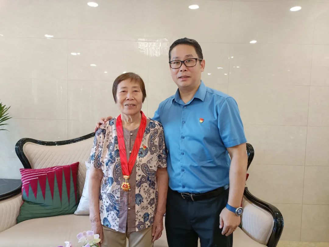 50年党龄,50载光荣。伦教医院党委书记吴志强来到老党员区琼珍同志的家中,为她佩戴“光荣在党50年”纪念章。沉甸甸的纪念章戴在胸前,让她真切感受到了党的关怀和温暖。